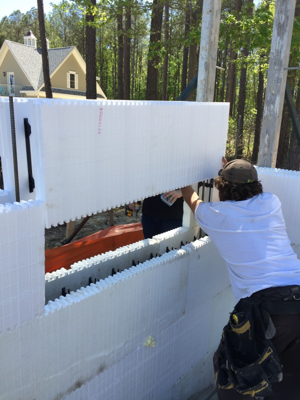 Insulating concrete form or insulated concrete form (ICF) is a system of formwork for reinforced concrete usually made with a rigid thermal insulation that stays in place as a permanent interior and exterior substrate for walls, floors, and roofs. The forms are interlocking modular units that are dry-stacked (without mortar) and filled with concrete. The units lock together somewhat like Lego bricks and create a form for the structural walls or floors of a building. ICF construction has become commonplace for both low-rise commercial and high-performance residential construction as more stringent energy efficiency and natural disaster-resistant building codes are adopted. ICFs may be used with frost protected shallow foundations (FPSF).